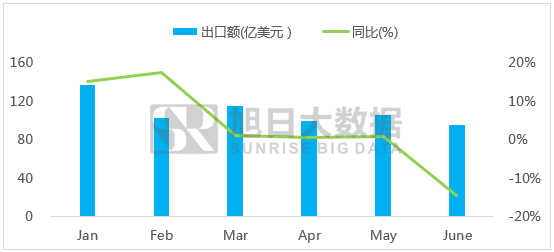 2017年1-6月,中國(guó)手機(jī)出口累計(jì)總金額達(dá)到658.7億美元,同比增長(zhǎng)3.2%。然而,6月的手機(jī)出口額僅為96.3億美元,同比下降14.4%,成為今年上年出口額最低的月份。