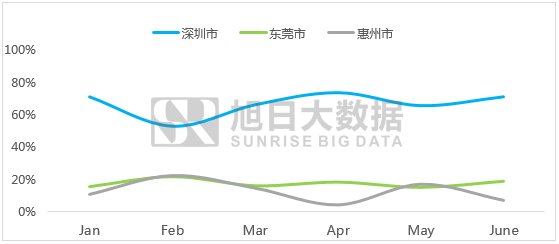 深圳憑借其國(guó)際交流中心的地位以及港口優(yōu)勢(shì),成為廣東省手機(jī)出口的最大原產(chǎn)地,今年1-6月,深圳占廣東總出口量的67%,而同為手機(jī)生產(chǎn)制造重地的東莞和惠州則分別占17%和12%。