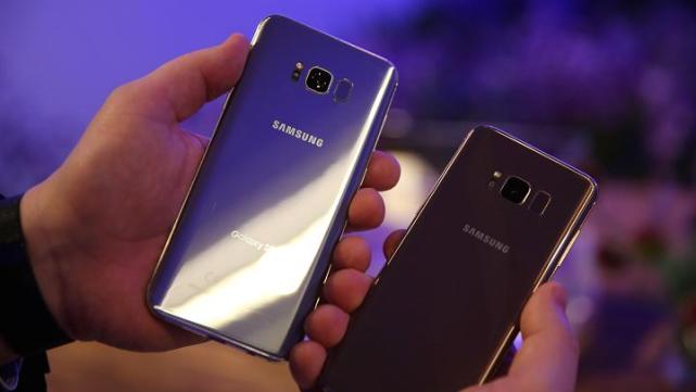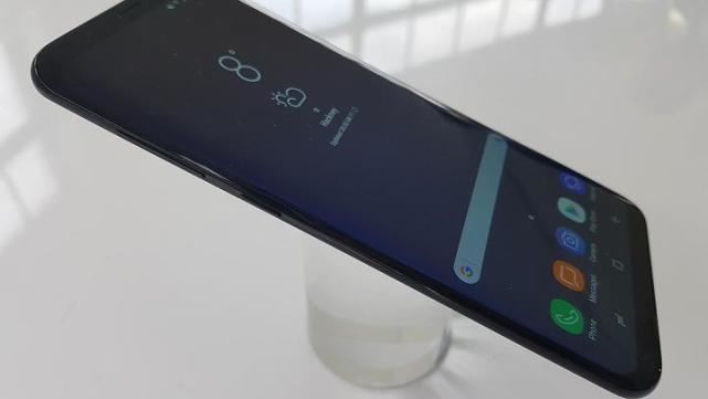 圖6:三星Galaxy S8 Plus展示其“無(wú)限顯示”屏幕,邊框更小。這款手機(jī)于2017年3月29日在紐約舉行的發(fā)布會(huì)上推出。