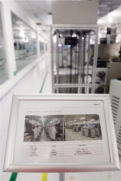 實現(xiàn)“機器換人”后,基本上兩年內就能回本。按計劃,人工檢測車間在不久后也將變?yōu)闊o人線,包裝線目前也已進入調試階段,至少60%的崗位將被替代。