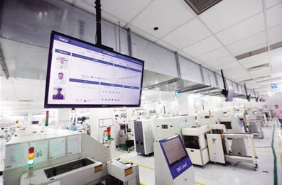 工廠看板的屏幕上實時顯示了自動流水線的運作情況,方便管理監(jiān)督。