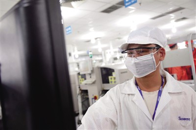 24℃恒溫,52%恒濕。在悶熱難耐的桑拿天,位于上海市青浦工業(yè)園區(qū)的這個車間顯得有條不紊,沒有嘈雜的轟鳴聲,也沒有瑣碎的交談聲。這里是晨訊科技集團的手機和通訊模塊制造廠,也是國內首個手機業(yè)“無人工廠”。無人化車間面積約3000平方米,占據(jù)了廠房的一整個樓層。