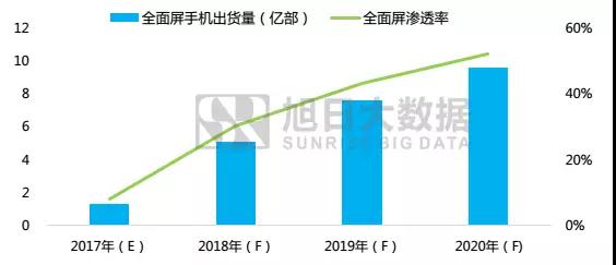 圖表 3 2017-2020年全面屏手機(jī)出貨量及滲透率