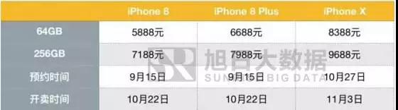 圖表1 蘋果iphone8系列預(yù)售價格表