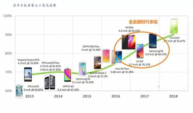 根據(jù)相關(guān)市場(chǎng)研究機(jī)構(gòu)公布的數(shù)據(jù),2017年全面屏產(chǎn)品在智能手機(jī)市場(chǎng)的滲透率僅為6%,但隨著越來越多上游面板廠的介入,這一數(shù)字將會(huì)上升到50%,而到2021年,幾乎所有的產(chǎn)品都會(huì)采用全面屏。