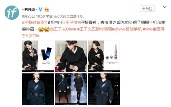 vivo X20全面屏手機(jī)走向時(shí)尚前沿,攜手王子文出席巴黎時(shí)裝周