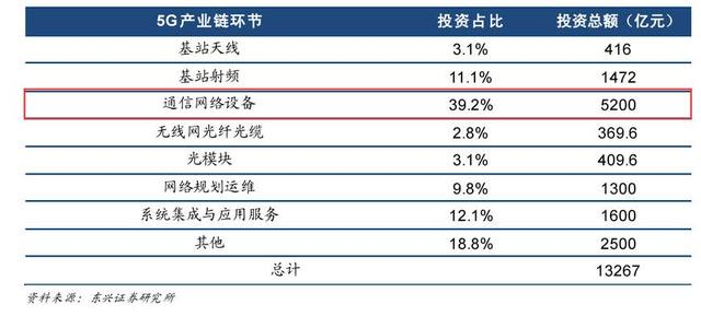其中,通信網(wǎng)絡(luò)設(shè)備(SDN/NFV 解決方案)投資總額將達5200億元,占比約40%。