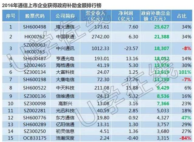 有統(tǒng)計數(shù)據(jù)顯示,2016年政府為74家通信上市企業(yè)發(fā)放政府補助金共計約21.1億元,其中,中興通訊獲得政府補助金額1.83億元,在74家企業(yè)中名列第三位。