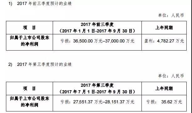 而到了2017年,其業(yè)績(jī)依然不見好轉(zhuǎn)的跡象,近來,據(jù)其發(fā)布的2017年第三季度財(cái)報(bào)顯示,其凈利潤(rùn)再度下滑,且下降幅度比之前還要嚴(yán)重!據(jù)其數(shù)據(jù)顯示,今年前三季度,其總計(jì)虧損3.65億元-3.70億元,而去年同期其凈利潤(rùn)為0.48億元!但就今年第三季度而言,其就虧損了2.77億元-2.85億元,而去年同期雖然也是虧損但是只虧損了35.62萬元!由此可見,進(jìn)入2017年以后,大富科技的業(yè)績(jī)并不怎么理想,導(dǎo)致公司進(jìn)入第三季度后巨額虧損!