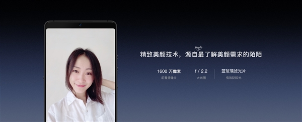 前置為1600萬(wàn)像素,光圈F2.2,支持Arcsoft背景虛化算法、陌陌AI實(shí)時(shí)美顏。