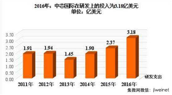 因此中芯需要更多的技術(shù)積累和研發(fā)投入??聪聢D,雖然穩(wěn)步提升,但是2016年中芯的研發(fā)投入僅為3.18億美元,需要進(jìn)一步的加大研發(fā)力度。實(shí)際上,相對(duì)收入來(lái)說(shuō),3.18億美元研發(fā)投入已經(jīng)占到了中芯國(guó)際收入的10.9%,已經(jīng)是非常高的水平了。制約中芯國(guó)際研發(fā)投入增長(zhǎng)的是它的收入不高,2016年只有不到30億美元,也就是說(shuō)中芯國(guó)際如果要不停的保持研發(fā)支出,必須先將自己的營(yíng)收做大。經(jīng)常有人說(shuō),中國(guó)制造大而不強(qiáng),實(shí)際上,先將企業(yè)做大往往更能把企業(yè)做強(qiáng)。