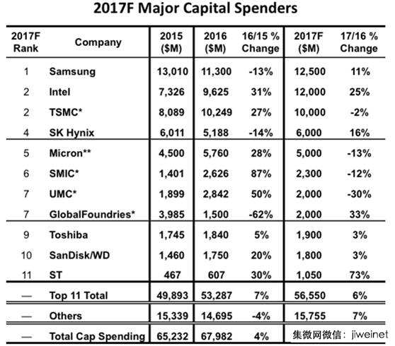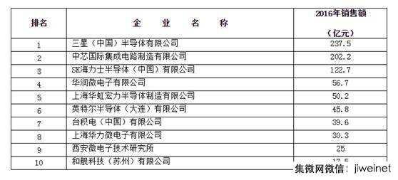 根據(jù)美國(guó)市場(chǎng)研究機(jī)構(gòu)ICInsights統(tǒng)計(jì),2016年,全球排名前十的芯片代工廠商為: