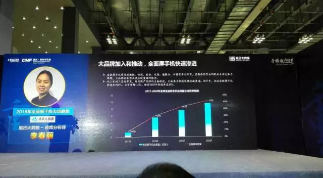 在今天(12月2日)下午舉辦的“2017年重慶·第三季‘全面屏’全面來襲”的論壇上,旭日大數(shù)據(jù)(http://sri.shoujibao.cn/)首席分析師李春麗給我們帶來了有關(guān)《2018年全面屏手機(jī)市場趨勢》的演講,從目前品牌市場競爭趨勢、全面屏手機(jī)發(fā)展趨勢與預(yù)測、產(chǎn)業(yè)鏈、方案等多個方面和角度為我們解析全面屏,以及全面屏手機(jī)帶來的變化和其未來的市場趨勢。