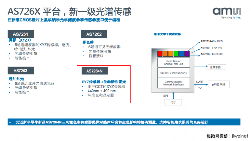 此次,艾邁斯半導(dǎo)體高管團(tuán)隊中國行,主要發(fā)布的產(chǎn)品就屬于光學(xué)領(lǐng)域——一顆三刺激傳感器AS7264N。據(jù)悉,AS7264N可以提供的顏色測量,可精準(zhǔn)匹配人眼對可視光譜的反應(yīng),還能精確地測量藍(lán)光波長。