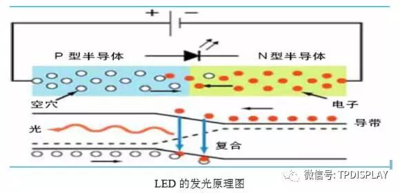 LED 是“Light Emitting Diode”的縮寫,中文譯為“發(fā)光二極管”,是一種可以將電能轉(zhuǎn)化為光能的半導(dǎo)體器件。LED 的核心部分是由 p 型半導(dǎo)體和 n 型半導(dǎo)體組成的芯片,在 p 型半導(dǎo)體和 n 型半導(dǎo)體之間有一個(gè) p-n 結(jié),當(dāng)注入的少數(shù)載流子與多數(shù)載流子復(fù)合時(shí)會(huì)把多余的能量以光的形式釋放出來,從而把電能轉(zhuǎn)換為光能。不同材料的芯片可以發(fā)出紅、橙、黃、綠、藍(lán)、紫色等不同顏色的光,“發(fā)光二極管”也因此而得名。
