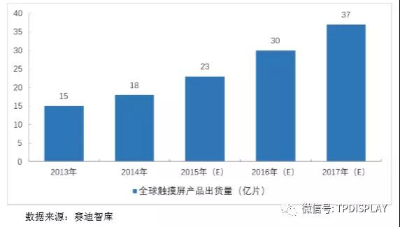 根據賽迪智庫的研究報告:2014年,我國觸摸屏產(chǎn)量約10億片,同比增長(cháng)25%,占全球總產(chǎn)量比例超過(guò)50%,初步估算產(chǎn)值可達35-40億美元。預計2017年,我國觸摸屏產(chǎn)業(yè)規??稍?014年基礎上再翻一番,骨干企業(yè)從技術(shù)、資金實(shí)力上將具備較強的國際競爭力,全行業(yè)年工業(yè)產(chǎn)值可達到70億美元左右。