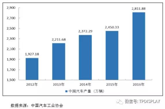 車(chē)載觸控產(chǎn)品的使用目前只占整個(gè)集成觸控模組和觸摸屏市場(chǎng)的一小部分,但是中小型轎車(chē)搭載平板觸摸中控系統以及車(chē)載觸控GPS導航已成為主流趨勢。汽車(chē)產(chǎn)銷(xiāo)量的持續增加仍對集成觸控模組和觸摸屏生產(chǎn)廠(chǎng)商帶來(lái)有利影響。根據國際汽車(chē)制造商協(xié)會(huì )的數據顯示,全球乘用車(chē)產(chǎn)量在2012年-2015年連續穩定增長(cháng),2015年產(chǎn)量超過(guò)6,856萬(wàn)輛6。隨著(zhù)人們對汽車(chē)內飾舒適性、便捷性的需求提升,車(chē)載觸控產(chǎn)品的產(chǎn)業(yè)鏈規模將得到巨大擴張。全球乘用車(chē)年產(chǎn)量情況如下圖所示: