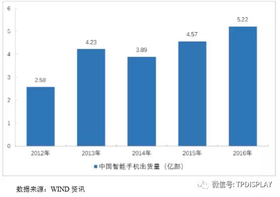 根據工業(yè)和信息化部相關(guān)統計數據,中國智能手機出貨量在2014年-2016年連續增長(cháng),復合增長(cháng)率為15.84%,2016年出貨量達到5.22億部5。高性?xún)r(jià)比代表的中國智能手機品牌全球占比持續創(chuàng )新高,年增長(cháng)率明顯高于全球平均水平。我國智能手機市場(chǎng)規模的良態(tài)發(fā)展將繼續帶動(dòng)觸控行業(yè)產(chǎn)品市場(chǎng)規模的擴大。