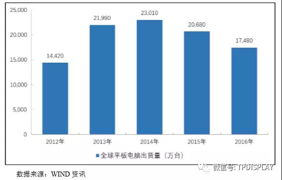 自平板電腦問(wèn)世以來(lái),人們對電子計算機設備的傳統觀(guān)念也發(fā)生了改變,搭載觸摸屏的平板電腦行業(yè)開(kāi)始蓬勃發(fā)展起來(lái)。但是受到大屏幕、功能先進(jìn)的智能手機流行的沖擊,2014年平板電腦全球出貨量增幅開(kāi)始放緩,2015年、2016年平板電腦出貨量均較前一年度有所下降。2012-2016年,全球平板電腦出貨量情況如下圖所示: