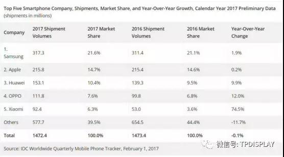 此外,在即將到來(lái)的2018第一季度智能手機(jī)銷售淡季,有調(diào)研機(jī)構(gòu)表示,國(guó)產(chǎn)手機(jī)可能因內(nèi)需減少且渠道庫(kù)存水位增高,預(yù)估前五大品牌除蘋果外,皆面臨 3-4 成季衰退。