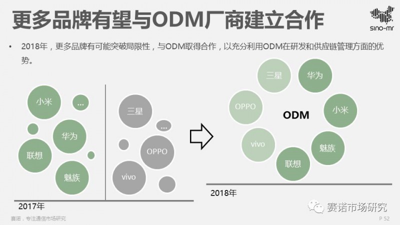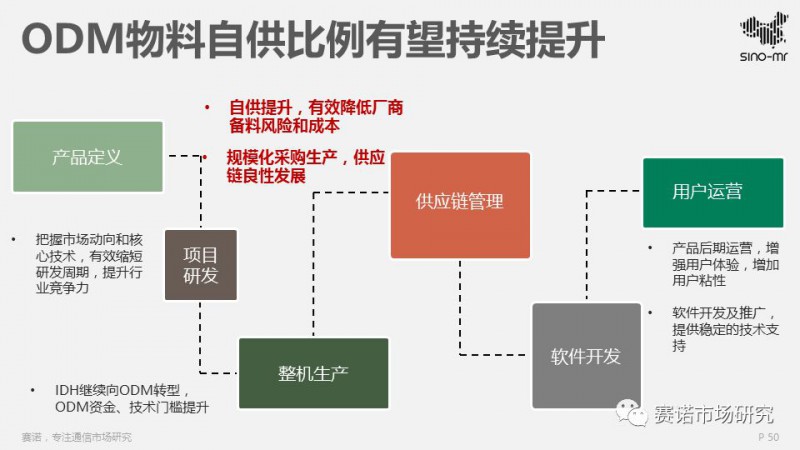 對于手機ODM行業(yè)趨勢,賽諾也給出了自己的看法。主要有三方面:1.ODM物料自供比例有望持續提升;2.ODM廠(chǎng)商繼續強化精品戰略;3.更多品牌廠(chǎng)商有望與ODM廠(chǎng)商建立合作,如OPPO、vivo、三星等都將向ODM廠(chǎng)商委托訂單。?