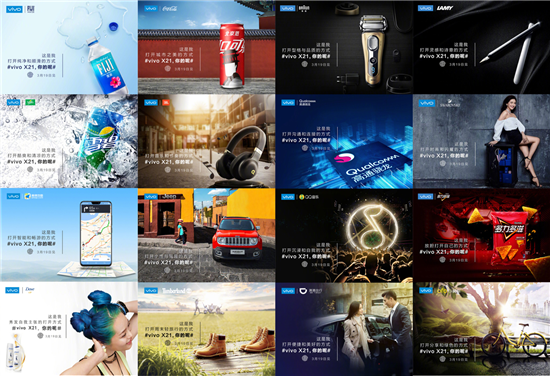 上周,vivo正式宣布vivo X21發(fā)布會日期之后,各領(lǐng)域潮牌就紛紛為vivo X21發(fā)布會打Call。其中有時尚高端領(lǐng)域的SWAROVSKI施華洛世奇,便捷生活的高德地圖、ofo小黃車及滴滴出行,還有QQ音樂、JBL、博朗、可口可樂、雪碧、多力多滋、FIJI_Water斐泉、Timberland、Qualcomm中國等16個品牌聯(lián)動應(yīng)援。