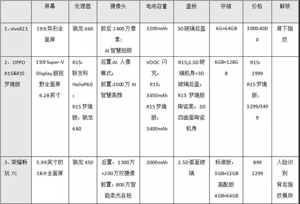 由以上新機(jī)的相關(guān)配置可以看出,2018年手機(jī)的流行趨勢也比較明顯了: