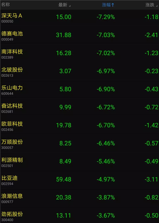 東旭光電下跌8.85%、紫光股份下跌8.84%、比亞迪電子下跌8.89%、有研新材下跌8.75%、環(huán)旭電子下跌8.75%、長電科技下跌8.69%、橫店東磁下跌8.42%、高偉電子下跌8.33%、樂視網(wǎng)下跌8.30%、匯頂科技下跌8.26%、晶方科技下跌8.23%、聞泰科技下跌8.11%、華映科技下跌7.89%、藍思科技下跌7.87%、歌爾股份下跌7.84%、上海新陽下跌7.81%、勁勝智能下跌7.77%、中興通訊下跌7.49%、安彩高科下跌7.45%、深天馬A下跌7.29%、德賽電池下跌7.03%、電連技術下跌7.01%···