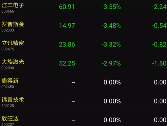 除了3家停牌企業(yè) 蘋果概念股無一幸免下跌