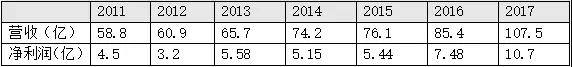 由以上圖表可見,其營收和凈利潤近幾年均呈象穩(wěn)定的上升趨勢,尤其是從2015年開始,二者上漲幅度還大大增加。其中2017年業(yè)績更是大增,據(jù)其公告顯示,全年實現(xiàn)營業(yè)收入107.5億元,同比增長25.92%,實現(xiàn)利潤總額13億元,同比增長46.51%,實現(xiàn)歸屬于上市公司股東的凈利潤10.7億元,同比增長43.63%,均增長30%以上。
