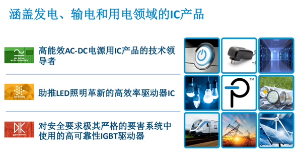 作為高壓功率集成芯片領(lǐng)域的先驅(qū),Power Integrations業(yè)務(wù)主要劃分為3大塊:首先是電源管理芯片,其次是LED驅(qū)動芯片,其三則是對安全要求極其嚴格的要害系統(tǒng)中使用的高可靠性IGBT驅(qū)動器!