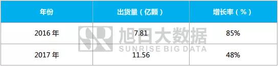 圖表2 2016-2017 年全球指紋模組出貨量及增長(zhǎng)率