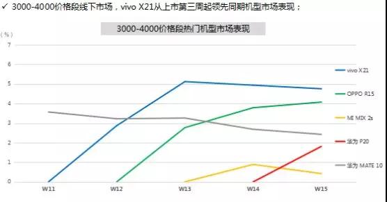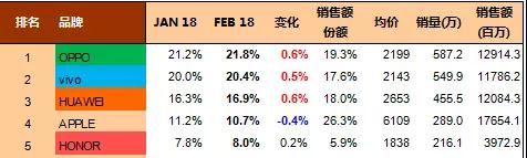 其中,按照排名先后前四位依次為華為、vivo、OPPO和蘋果。其中,1月、2月,OPPO相較于vivo均保持著微弱優(yōu)勢,但進入3月份,隨著vivo、OPPO新品的發(fā)布,尤其是憑借vivo X21系列,vivo關(guān)注度上漲至13.04%,實現(xiàn)反超OPPO。