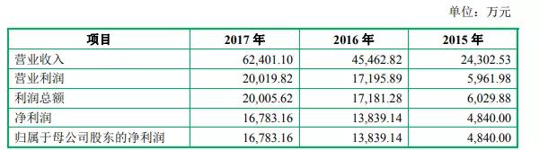 筆者發(fā)現(xiàn),2015年—2017年該公司的營收和凈利潤每年均出現(xiàn)較大漲幅。2015年—2017年五方光電分別實現(xiàn)營收2.43億元、4.55億元、6.24億元;實現(xiàn)凈利潤0.48億元、1.38億元、1.68億元。