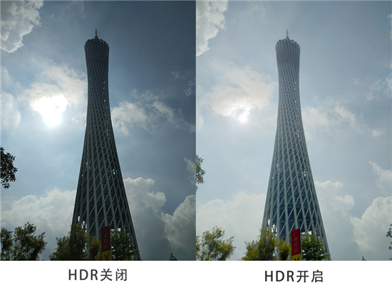 在這樣大逆光的環(huán)境下,往往會(huì)拍出主體較為黑暗的照片,而Y75s開啟逆光HDR之后,畫面整體的亮度以及通透度瞬間上了一個(gè)層次。天空變得更加明亮,還很好的照顧了暗部細(xì)節(jié),下面的樹木的綠色也展現(xiàn)了出來(lái)。不過(guò)Y75s也逃不過(guò)HDR的負(fù)面作用,照片有點(diǎn)“發(fā)灰”,但整體觀感還是比沒開啟HDR的要好幾倍。