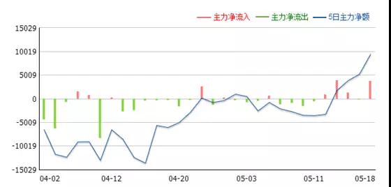 同時(shí),從主力資金凈額來(lái)看,從4月初到5月中旬這段時(shí)間內,其一直處于流傳狀態(tài),在這段時(shí)間內主力資金凈額幾乎全部為流出!直到5月15日以后,其開(kāi)始主力資金凈額開(kāi)始呈現大幅度流入狀態(tài)!