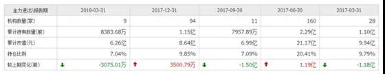 此外,從主力持倉機構數量來(lái)看,從2017年中旬以后一直處于下降狀態(tài),截至2017年中旬,結構數量為160家,當時(shí)累計持有股份數量為2.29億股,累計市值為21.17億元,到了2017年12月,結構數量下降到94家,累計持有數量為0.84億股,累計市值下跌到只有6.26億元!