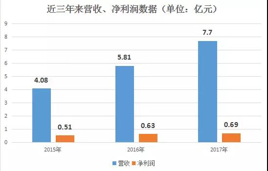 近年來(lái)宇瞳光學(xué)的營(yíng)收和凈利潤(rùn)也出現(xiàn)了不同程度的漲幅。宇瞳光學(xué)2015年、2016年、2017年的營(yíng)收分別為4.08億元、5.81億元、7.7億元、凈利潤(rùn)分別為0.51億元、0.63億元、0.69億元。