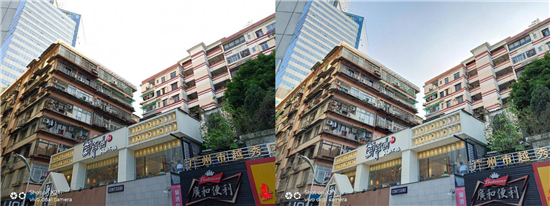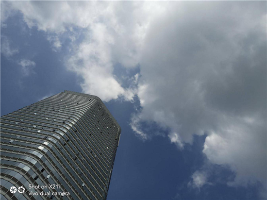 當然,作為vivo X系列,這樣的水準也早在意料之中,真正好戲的還在開啟逆光功能之后。在一些逆光場景下, vivo X21i的寬容度表現也是相當強勁,在保留天空高光白云細節(jié)的同時,前景房屋的細節(jié)也得到了不少的保留。在下方的樣張中也是同樣道理,開啟逆光后,畫面右側的過曝處有明顯的改善,建筑細節(jié)得到保留,畫面整體觀感大大改善。