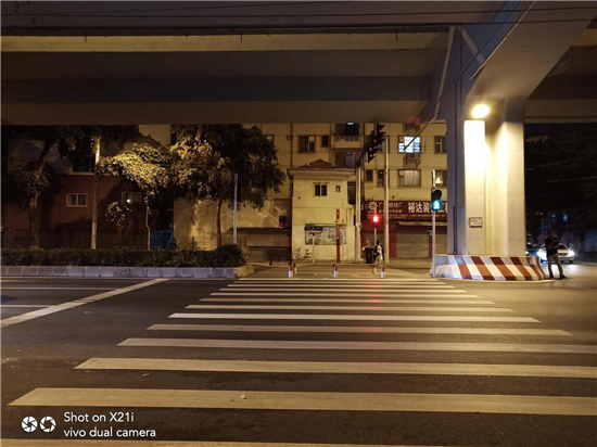 此外,vivo X21i沒有因為光線不足而導致解析力出現明顯的下降,可以看見以及光條條件不佳,柏油路以及樹葉的細節(jié)依舊清晰,白平衡表現也是一如既往的穩(wěn)當。