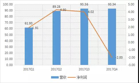 圖2 歐菲科技2017年單季度營(yíng)收與凈利情況(單位:億元)