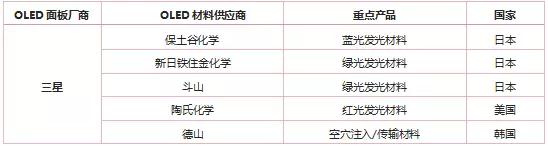 供應(yīng)鏈的角度來(lái)看,中國(guó)企業(yè)主要供應(yīng)OLED材料的中間體和單體粗品;而升華材料的核心是專利,具有較高的壁壘,主要由韓日德美企業(yè)壟斷。