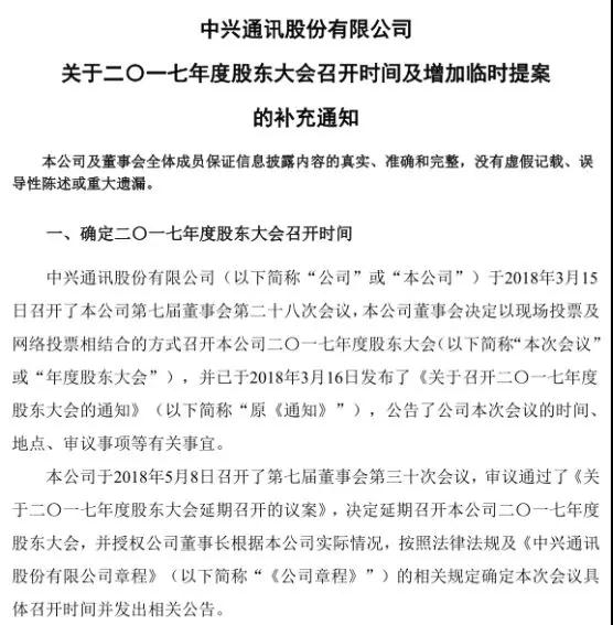 公告內(nèi)容顯示:根據(jù)本公司和全資子公司深圳市中興康訊電子有限公司與美國(guó)商務(wù)部工業(yè)與安全局達(dá)成的《替代的和解協(xié)議》,全體董事將于公司2017年度股東大會(huì)審議選舉出新任董事之時(shí)辭去公司董事職務(wù)以及所擔(dān)任的董事會(huì)下設(shè)各專(zhuān)業(yè)委員會(huì)的職務(wù)。