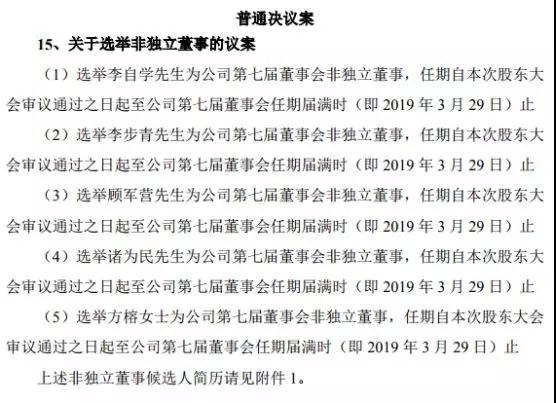 B、選舉5名非獨(dú)立董事的普通決議案。選舉李自學(xué)、李步青、顧軍營(yíng)、諸為民、方榕等5人為公司第七屆董事會(huì)非獨(dú)立董事。
