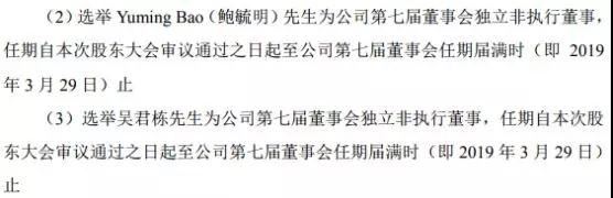 C、選舉3名獨(dú)立非執(zhí)行董事的普通決議案。選舉蔡曼莉、Yuming Bao(鮑毓明)、吳君棟等3人為公司第七屆董事會(huì)非獨(dú)立董事。