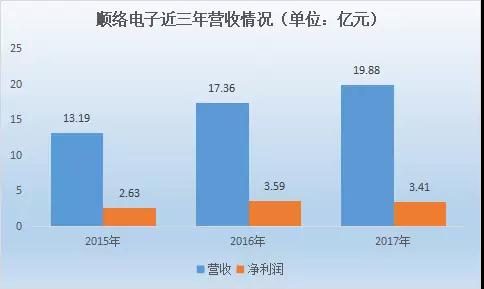 筆者查詢年報獲悉,順絡(luò)電子2015-2017年實現(xiàn)營收分別為13.19億元、17.36億元、19.88億元,同比增長分別為13.48%、31.61%、14.47%;歸屬于上市公司股東的凈利潤分別為2.63億元、3.59億元、3.41億元,同比增長分別為23.76%、36.36%、-4.97%。由此可見,近年來,順絡(luò)電子營收取得穩(wěn)步增長的良好趨勢,尤其是2016年營收實現(xiàn)大幅增長,據(jù)悉,這主要得益于公司當(dāng)年指紋識別用功能陶瓷片取得眾多客戶認(rèn)可,從而帶動銷售額爆炸性增長。