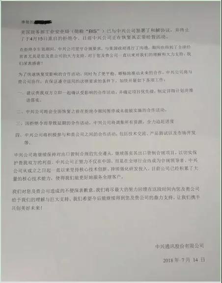據(jù)中興《合作伙伴信函》表示:為快速恢復(fù)受影響的合作活動,同時(shí)為了更平穩(wěn)、順暢地推動未來的合作,中興公司將與貴公司協(xié)作,在保證遵守適用的法律要求的條件下,加快開展如下各項(xiàng)合作: