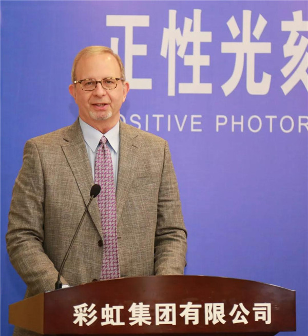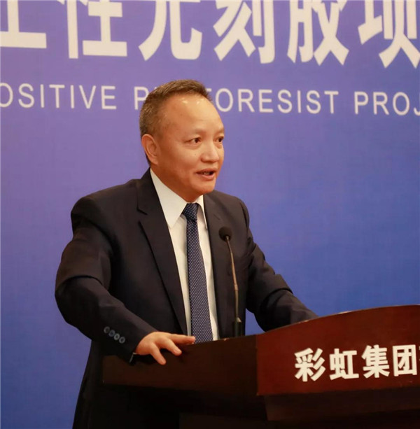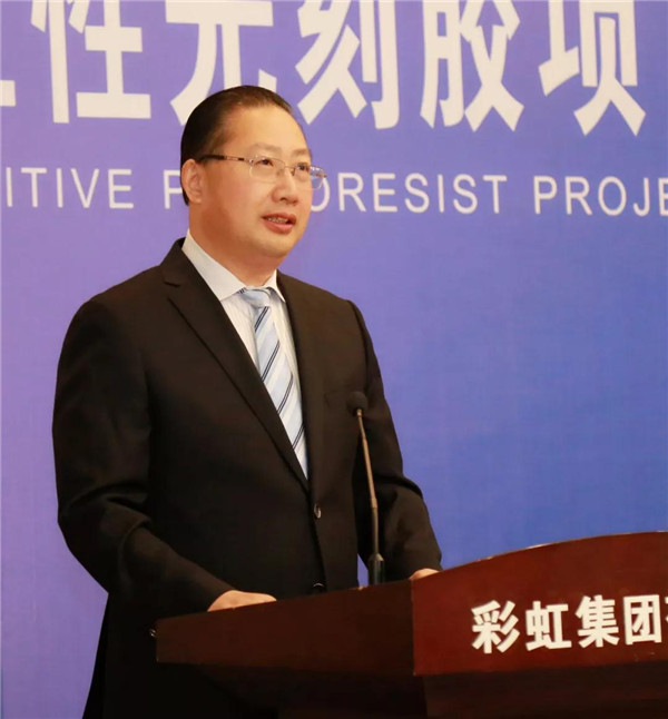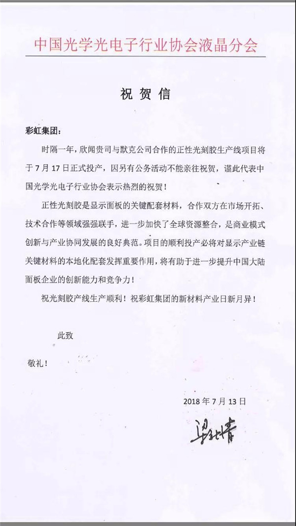 中國光電子協(xié)會液晶分會秘書長梁新清向彩虹正性光刻膠投產(chǎn)發(fā)來賀信
