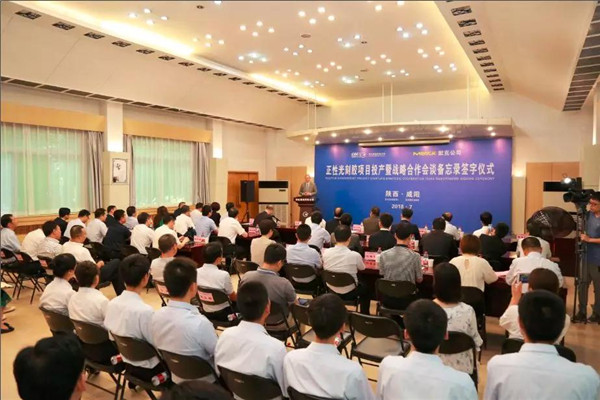 7月17日,中國電子彩虹集團舉行正性光刻膠項目投產(chǎn)暨戰(zhàn)略合作會談備忘錄簽字儀式。中國電子彩虹集團董事長、黨委書記司云聰,默克中國董事長、默克投資(中國)有限公司總裁安高博分別致辭,咸陽市副市長張小平講話。彩虹集團班子成員、彩虹新能源公司總經(jīng)理鄒昌福代表彩虹與默克公司簽訂戰(zhàn)略合作會談備忘錄。