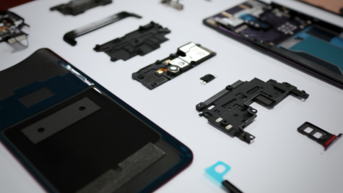 不妥協(xié)產(chǎn)品性能,F(xiàn)ind X結(jié)構(gòu)面積被壓縮11.2%,天線、電池、揚(yáng)聲器都得“搶地盤(pán)”。天線布局要重新設(shè)計(jì),元器件盡量小型化,主板下移靠掏空屏幕支架拓展電池空間,還有雙面堆疊SIM卡槽這些細(xì)節(jié)。